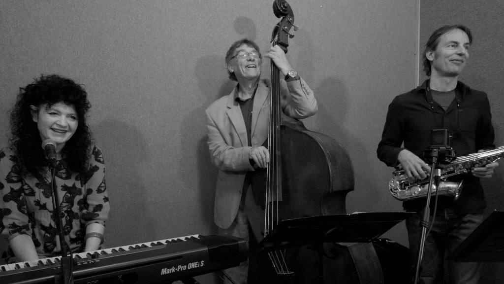The Constance Owen Trio – Constance: obviously, singer and piano; Chris Hinman: double bass; Simon Farmer: saxophone – have a real love of jazz and blues, especially latin, jazz standards and blues ballads. With the occasional bit of vintage pop.